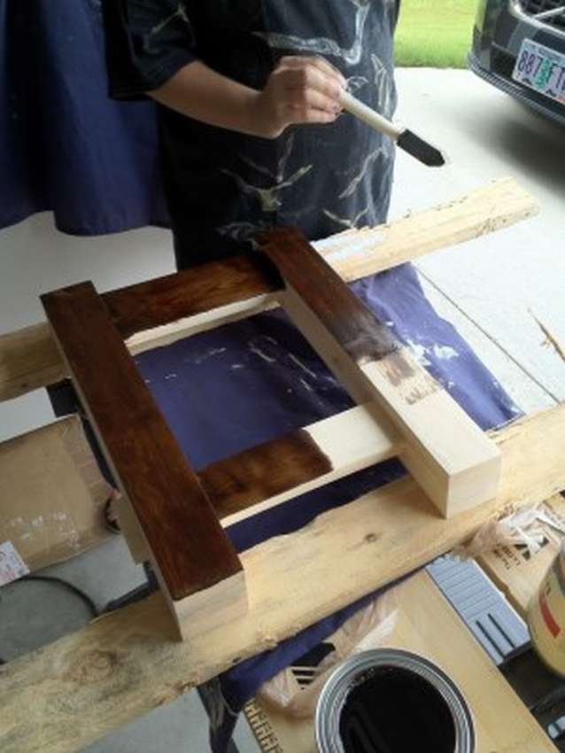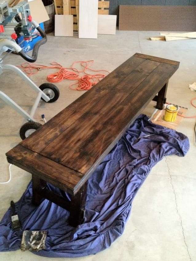 Когда работа завершена, скамейку в несколько слоев покрывают лаком.