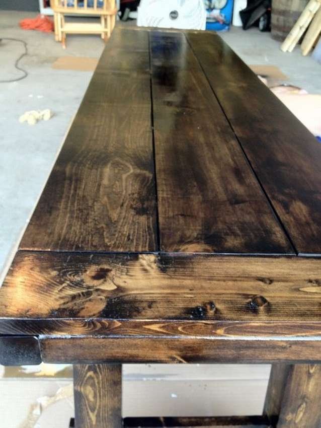 Остается обработать столешницу, если были использован ДСП, то стол шлифуют, красят и покрывают лаком, дальше крепят к раме.