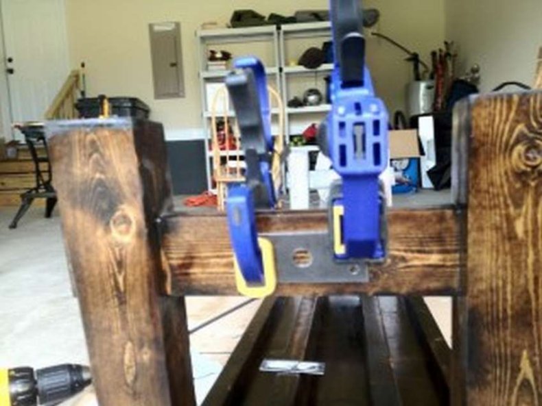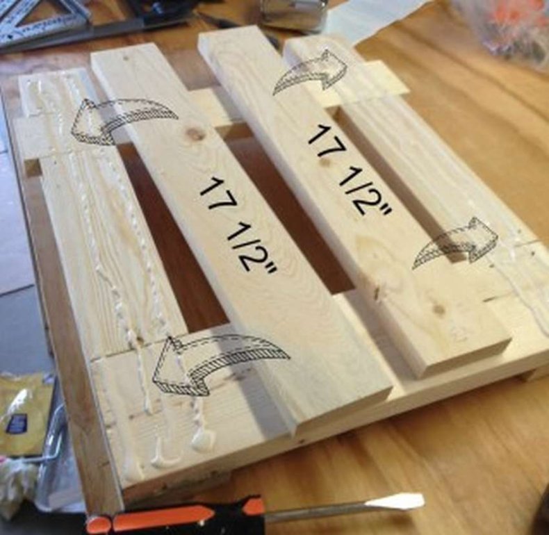 - Для стола 2 паллета скрепляют вместе.