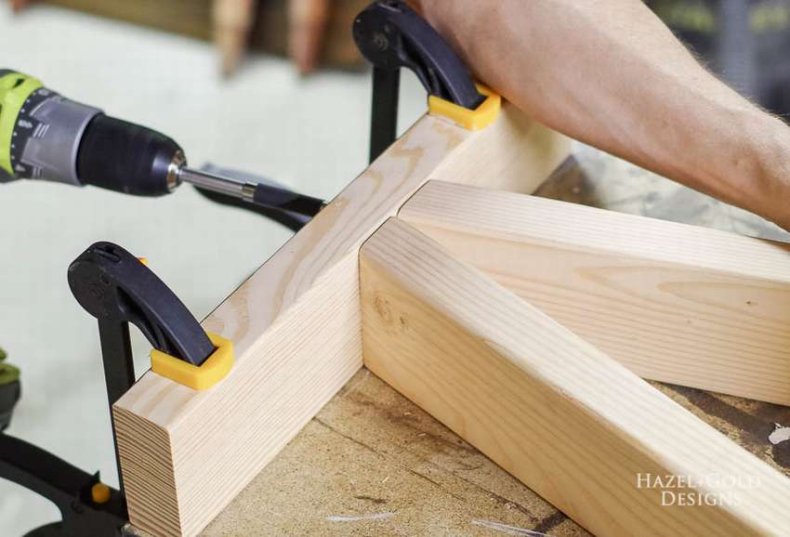 - Раму соединяют в прямоугольник шурупами.