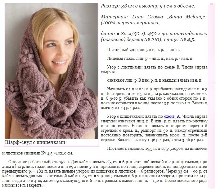 Шарф-снуд спицами с описанием схемы: учимся вязать без швов для взрослого и ребенка красивый шарф (в один или два оборота)