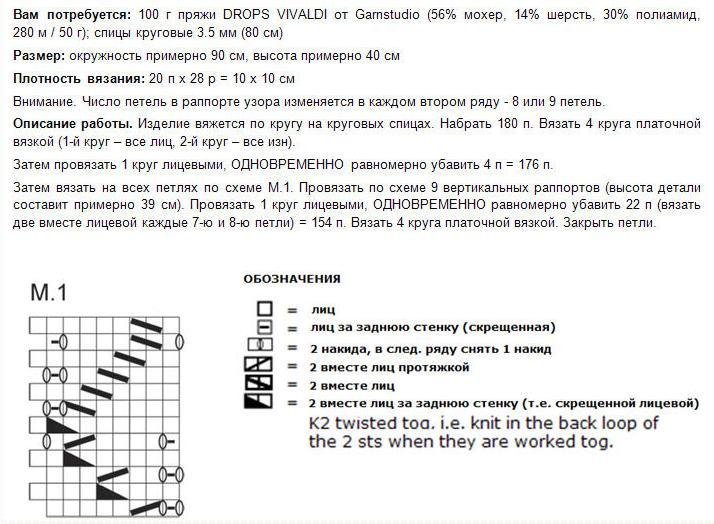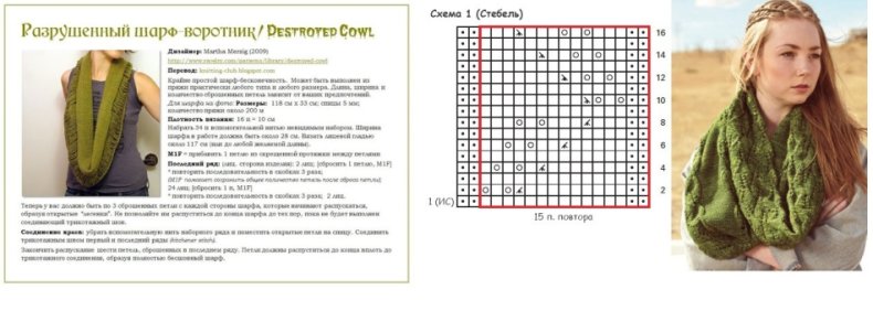 - Схема вязания изначально придает снуду волнообразную форму. Однако, если вы хотите получить петлю, как у Татьяны Мюллер, в которой узор четкий и ровный, вам следует вымыть и растянуть снуд после вязания.