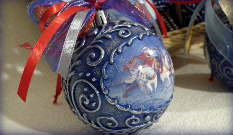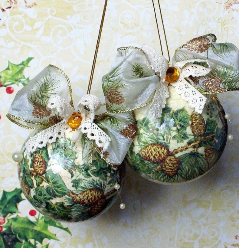 Прекрасные шарики получаются при оформлении их в стиле декупаж. Этот способ знаком всем мастерам рукоделия.