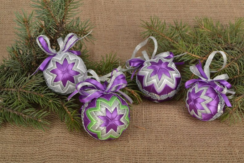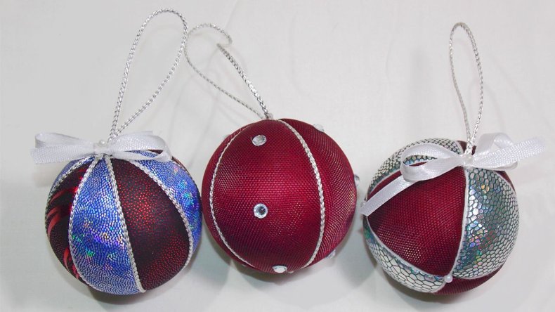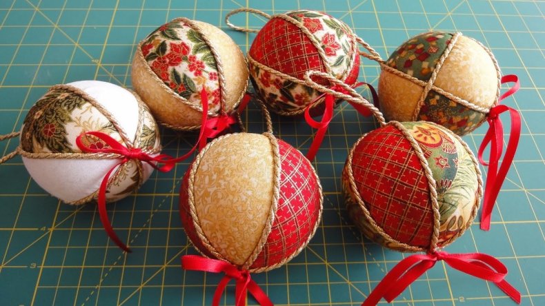 Ненужным остаткам различных тканей и тюлю умелый мастер подарит новую жизнь, украсив ими новогодние игрушки. Для рукоделия используют подручные материалы: