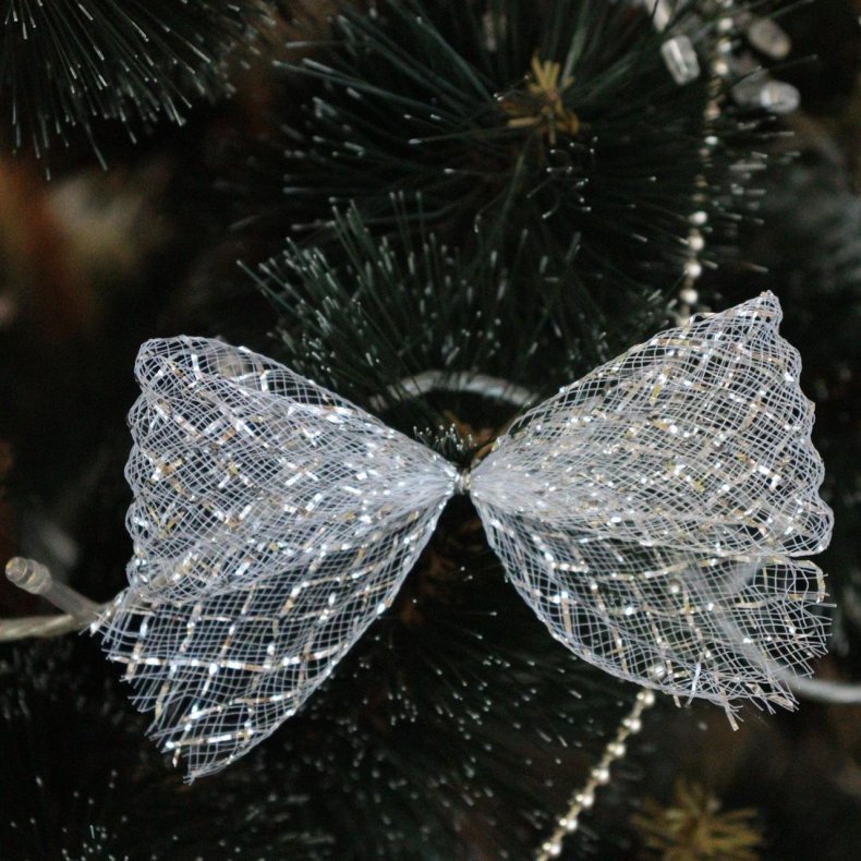 Очень просто и быстро можно изготовить красивый елочный шарик из бантиков, которые можно купить готовыми или сделать самостоятельно.