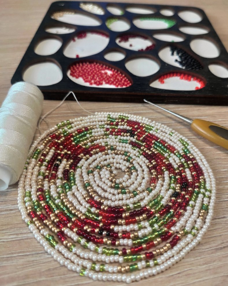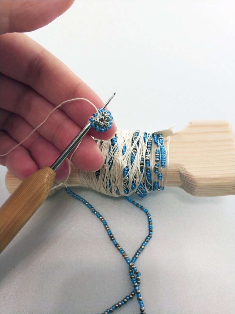 Можно использовать бусинки разных оттенков или использовать однотонные, например жемчужные.