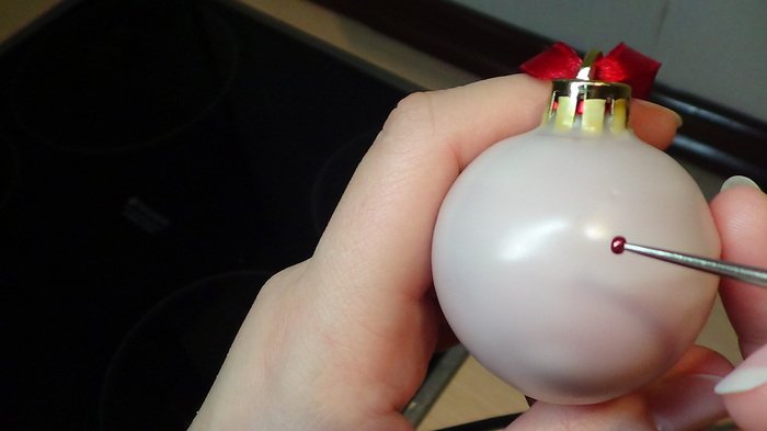 - Покрываем готовый шарик глянцевым лаком и просушиваем.