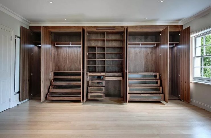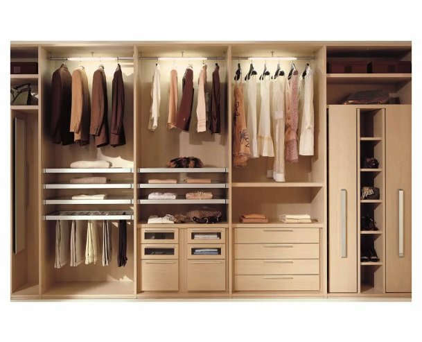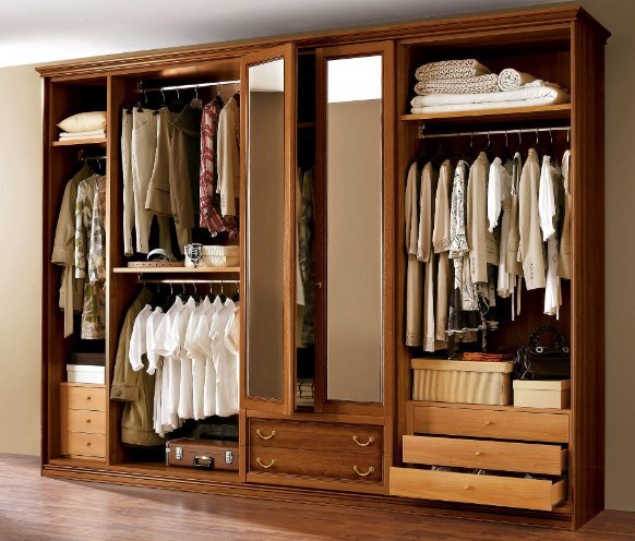 - с дополнительными деталями, вроде выдвижных ящичков, перекладин для вешалок и простых банальных полок, чтобы складывать одежду.