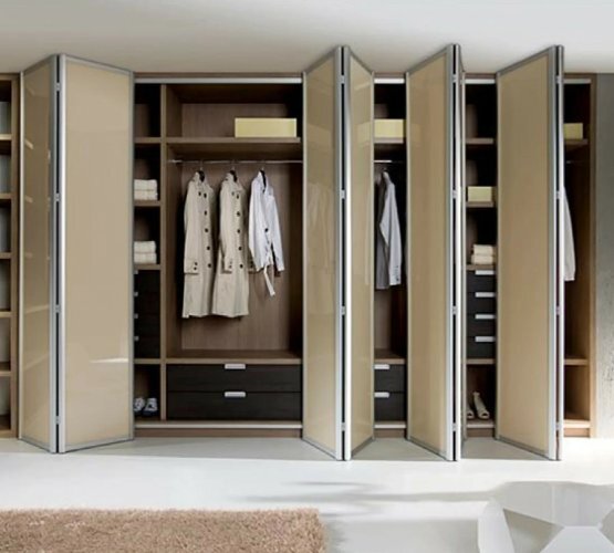 Это и распашные, и купе. Это пристенные модели с открытыми и закрытыми секциями. На приведенных фото видно, что авторы заботились о создании красивого интерьера не менее, чем об утилитарном назначении.