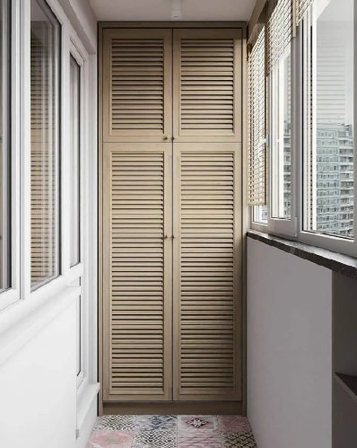 Считается оптимальным вариантом для балкона, прихожей, мансарды и дачного домика. Для жилых помещений применяется редко, причиной этого считается специфичность внешнего вида. Балконный шкафчик, в сочетании с облицовкой смотрится прекрасно и служит долго.