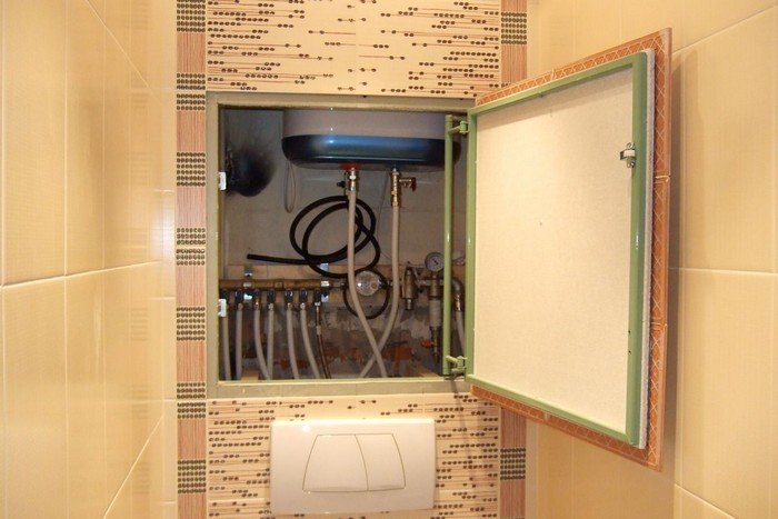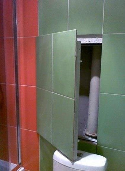 - Сантехнический, позволяющий скрывать трубы. Доступ к ним будет всегда под руками. Проблем с просмотром труб не будет возникать.