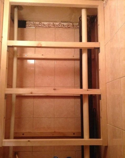 - Сначала нужно вырезать из материала стенку. Это важно, потому что стоит ориентироваться на размеры, подходящие под стену. Кроме того, нельзя забывать о том, что потребуется создать короб. Боковые стенки должны быть прочными. Можно разместить полочки. В качестве креплений можно взять готовые варианты, которые продаются во многих мебельных магазинах.