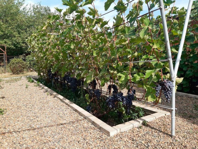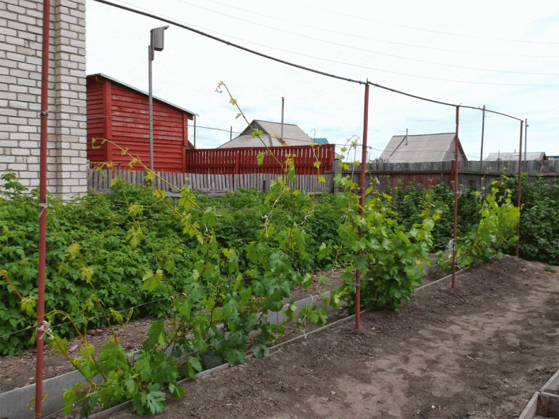 Также может располагаться по центру участка и применяться для выращивания нескольких сортов винограда.