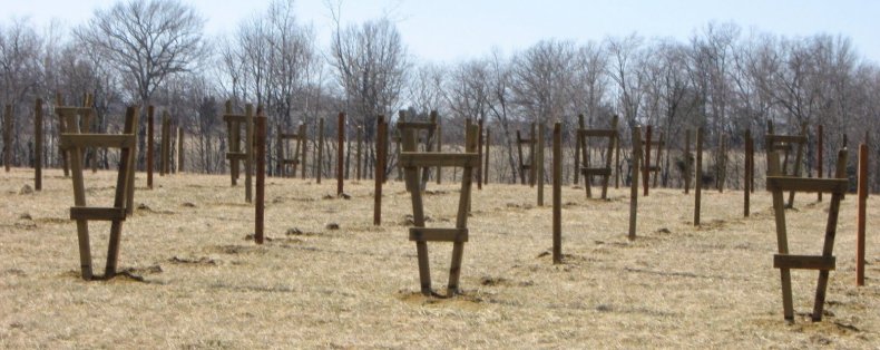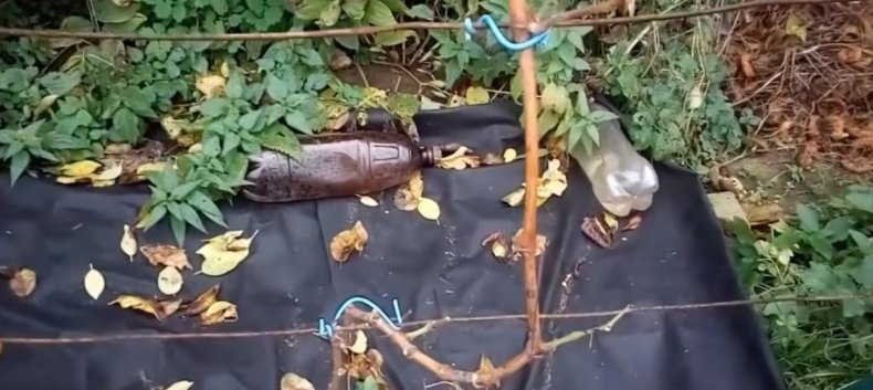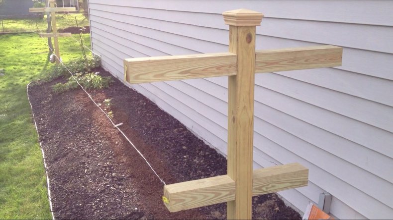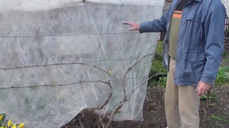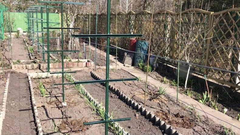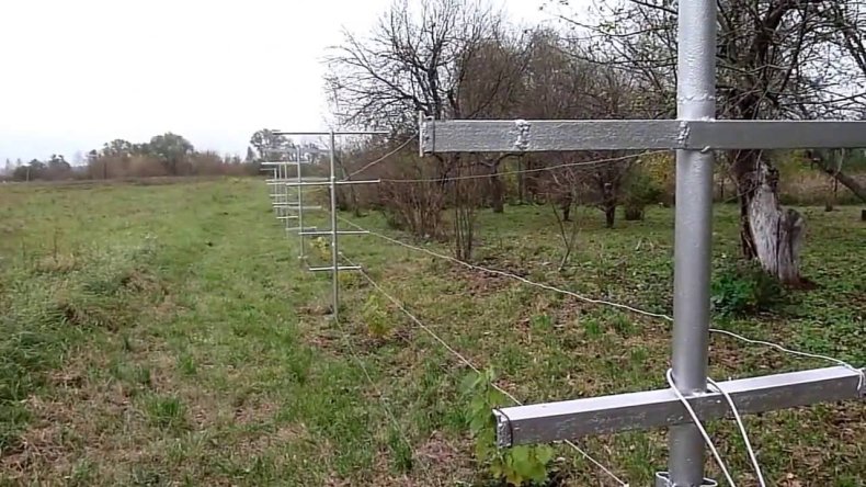 - Протягивают проволоку в горизонтальном направлении, так чтобы между рядами было 0,5 метров.