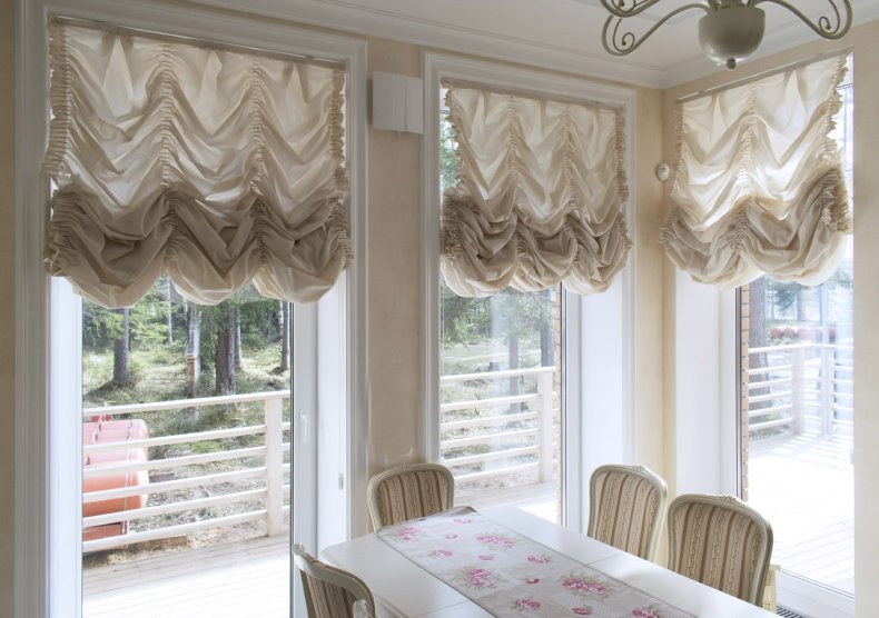 На самом деле есть шторы, специально разработанные для небольших окон. Однако два наиболее популярных варианта предназначены для небольших помещений по типу: шторы для кухни или столовой и шторы для ванной.