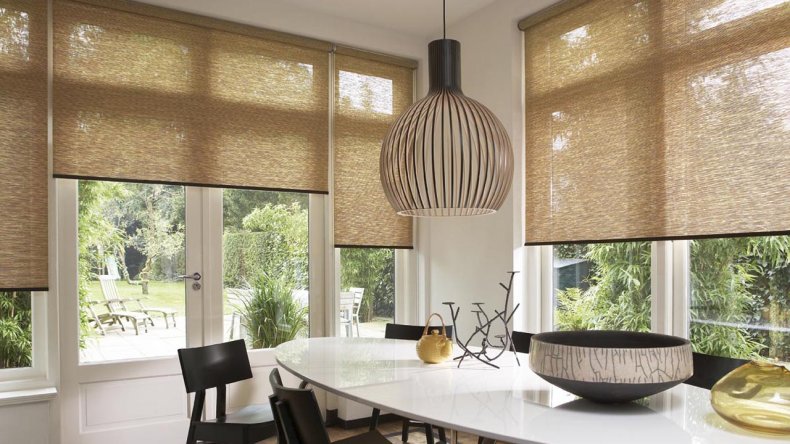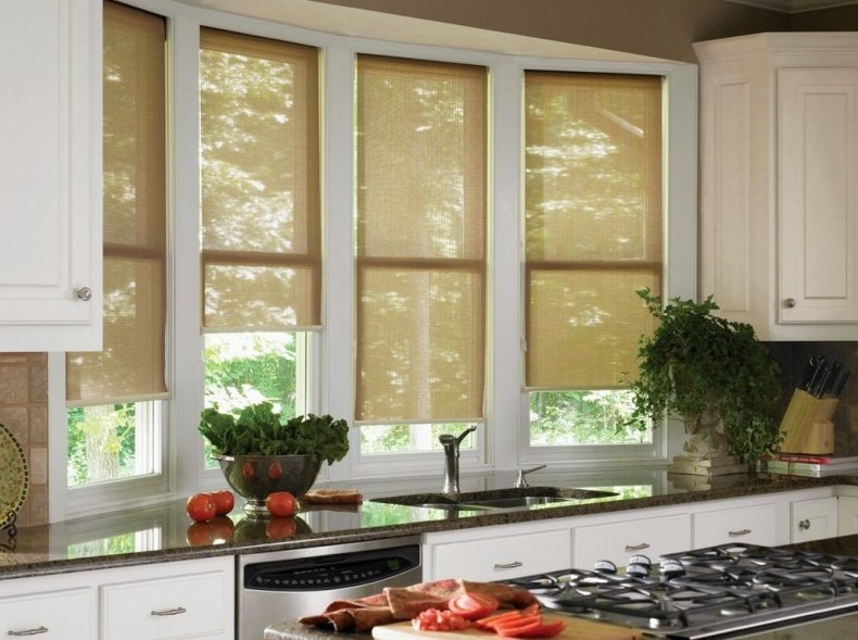 Вы можете установить тонкие бамбуковые жалюзи, которые будут висеть выше окна или выходить за пределы естественной ширины. Правда, внутри каркаса устанавливаются традиционные жалюзи.