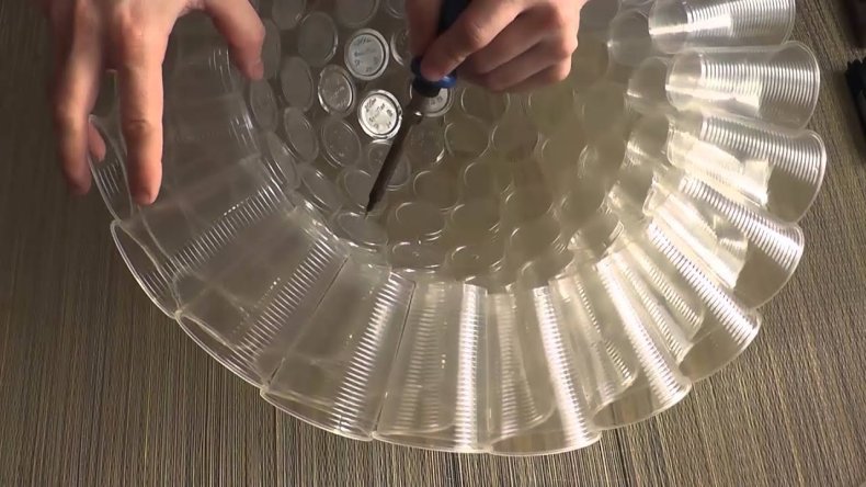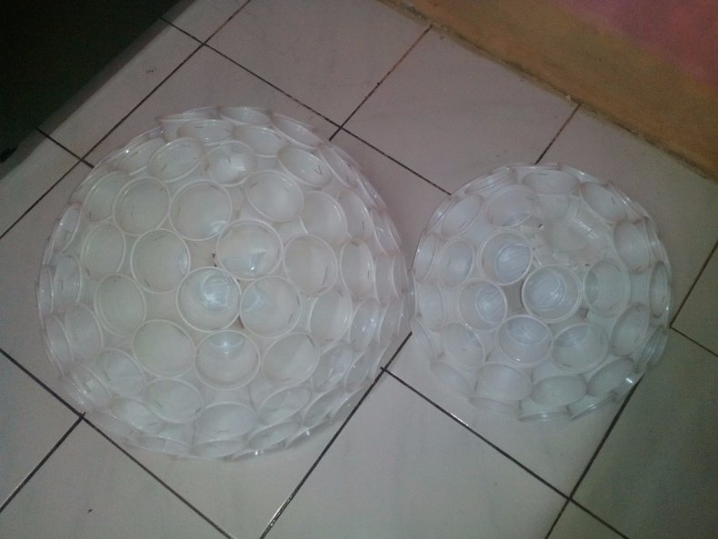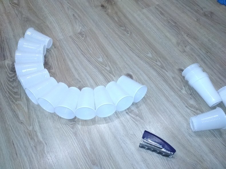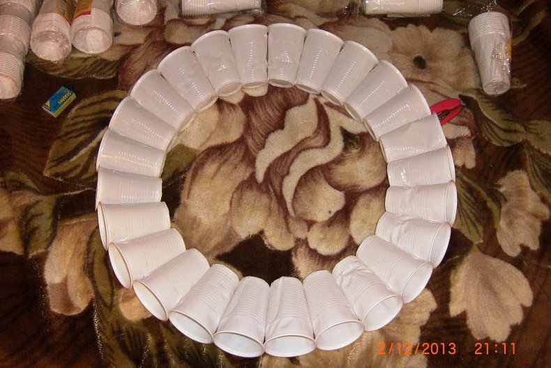 Нужно взять 2 стакана, склеив их кончиками. Процесс будет очень сложным, если не выполнить важную манипуляцию. Заключается она в том, что Сначала приклеивают плотный кусочек картона к открытой части одного и второго стакана.