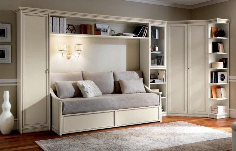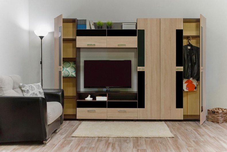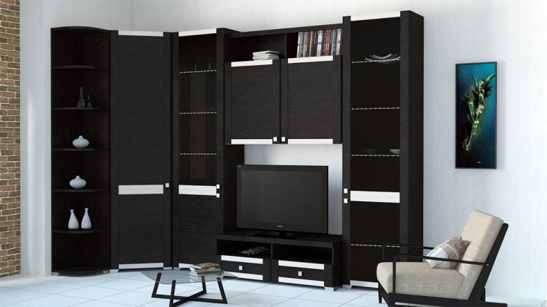 Беспроигрышное место для стенки – длинная стена. Две смежные плоскости используются только в случае с угловой моделью.