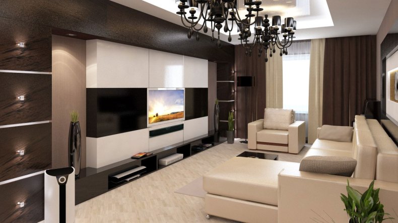 Несмотря на появление множества направлений, условно интерьер бывает классическим и современным. Поэтому выбирать стенку, руководствуясь интерьером зала, не так сложно.