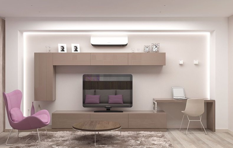 - Мини – аналог прямой стенки, который подходит для гостиной площадью менее 18 кв.м;
