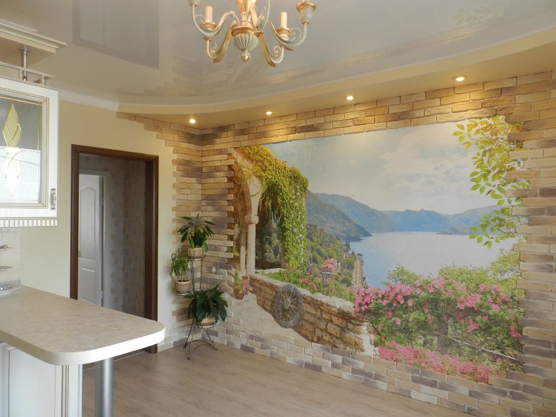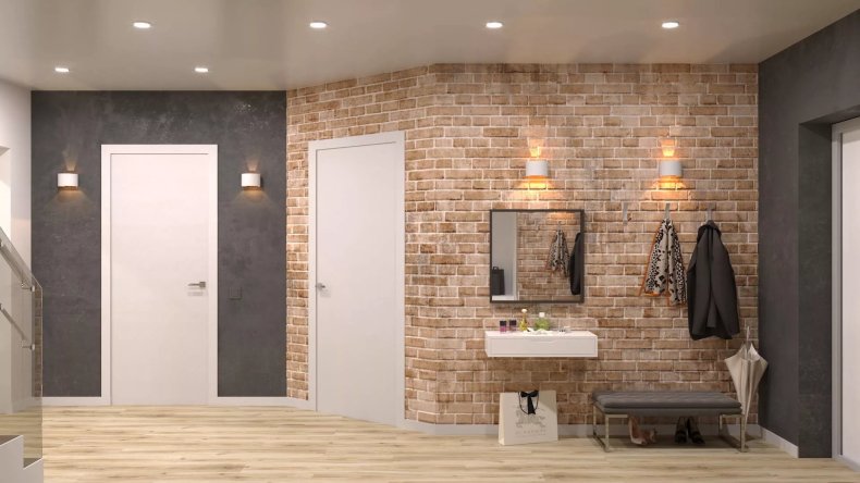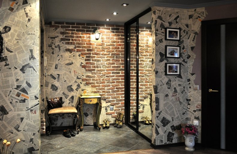 - Особенно это актуально в том случае, когда на стенах поклеены обои с изображением кирпича или камня.