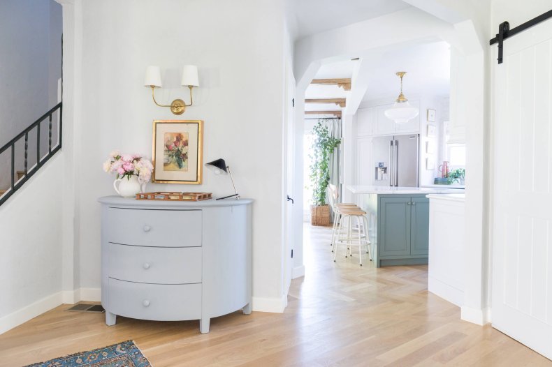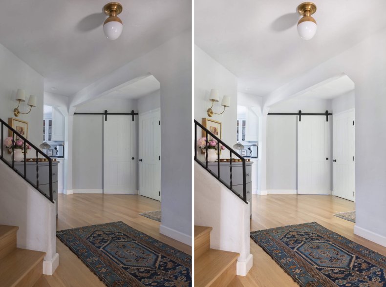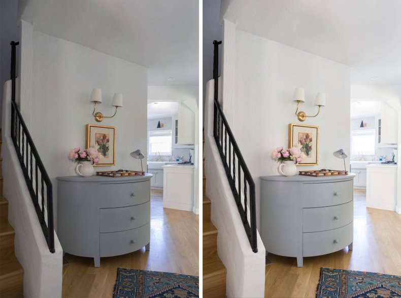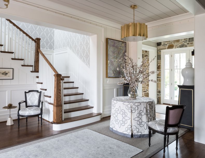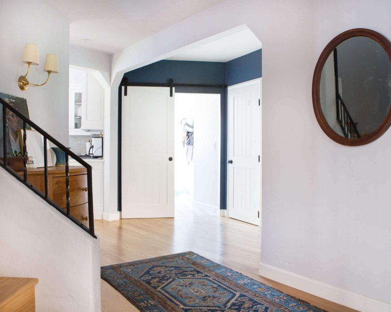 - Заключается он в том, что часть стены окрашивают, а другую оклеивают обоями.