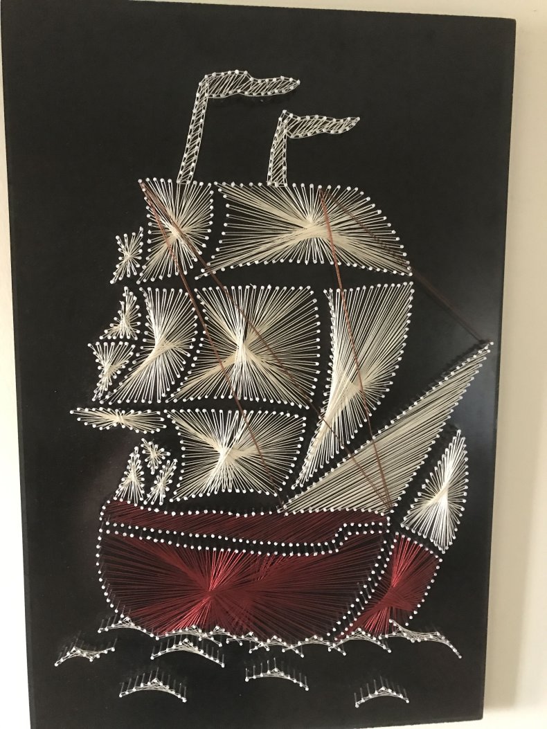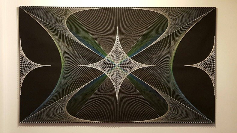 Создание композиций одной нитью открыто в Англии в 16-ом веке. Художники того времени воплощали безумные идеи при помощи элементарных материалов — нить и гвозди. Подобные картины украшали стены жилищ.