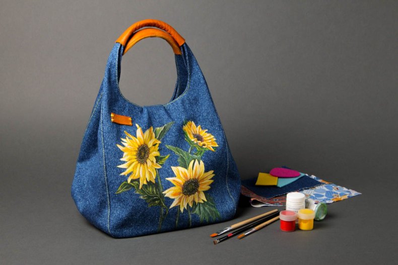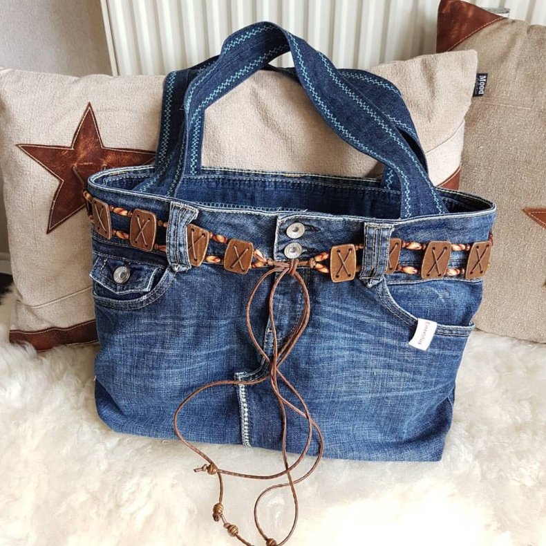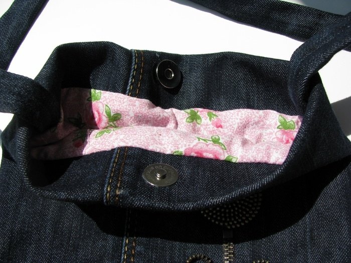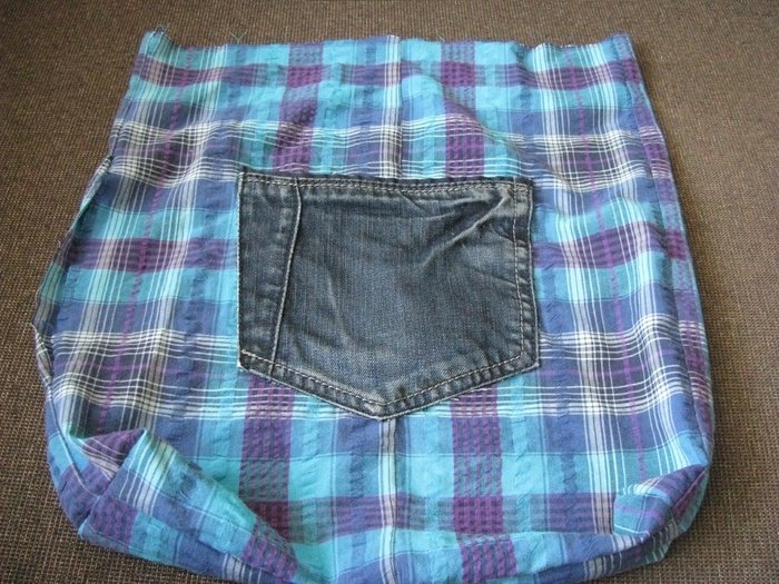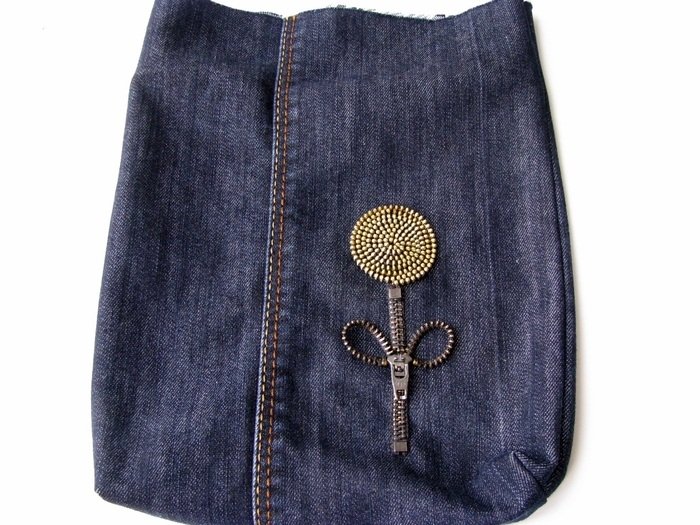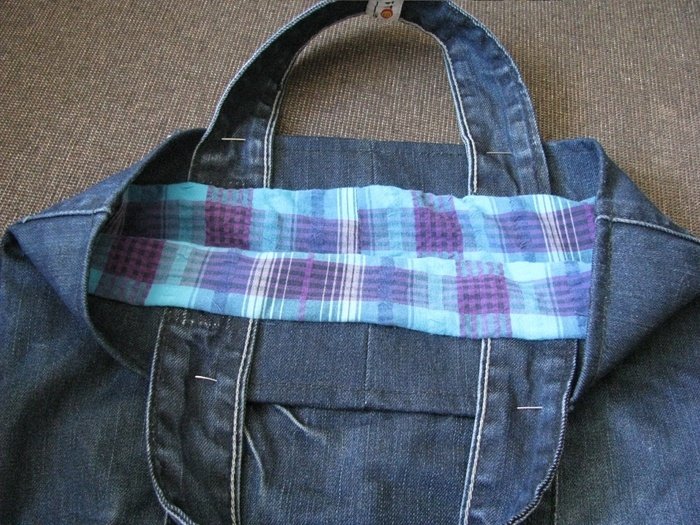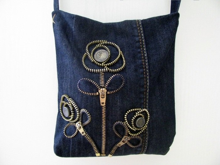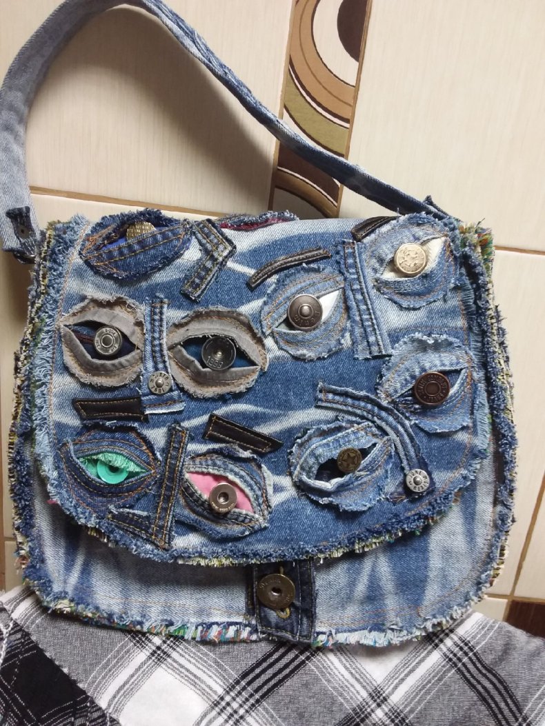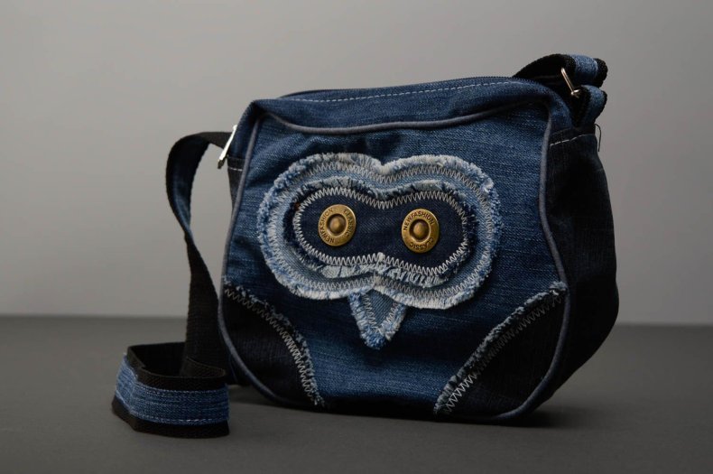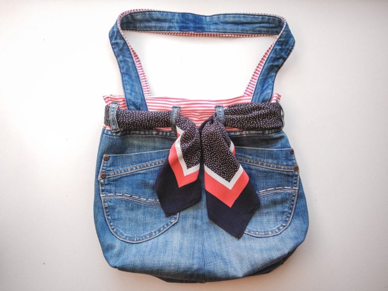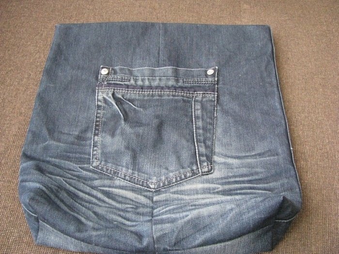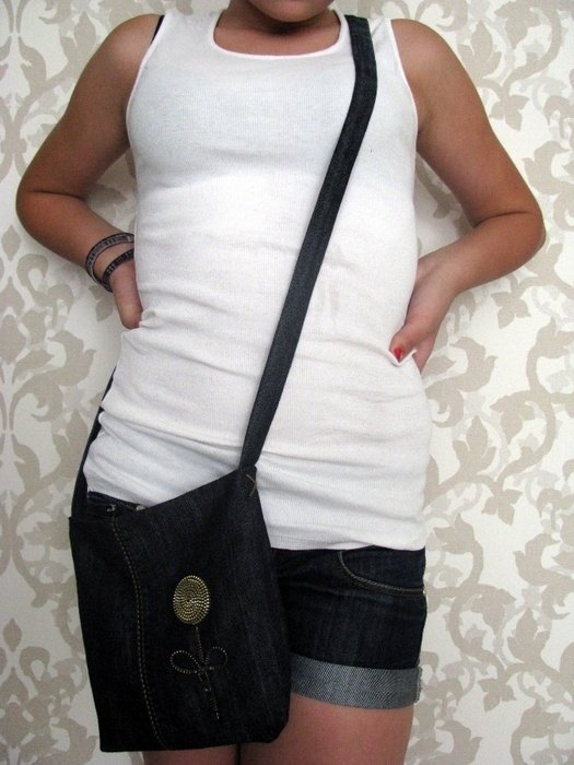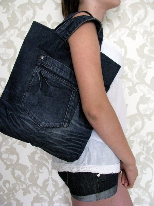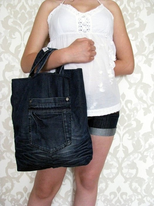 На этом этапе, необычная сумка из джинсов готова к использованию.