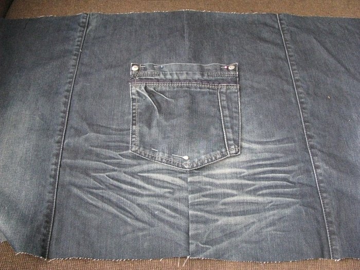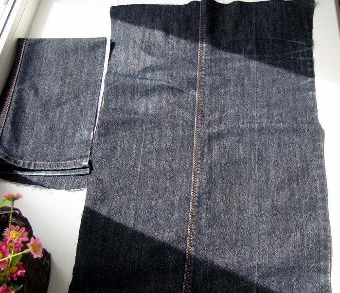 - Карман всегда нужен, поэтому он для удобства срезается с оставшихся участков джинсов.