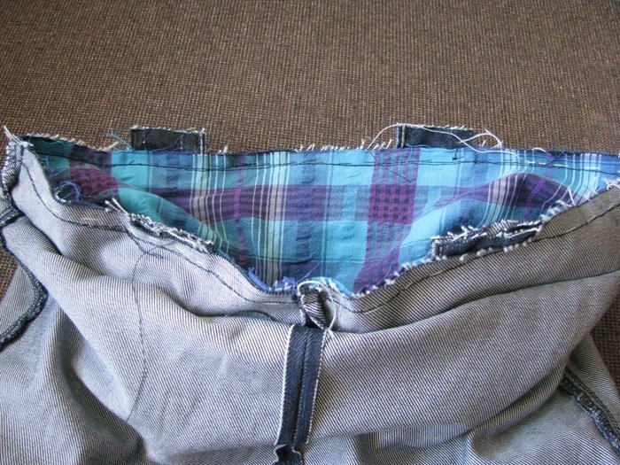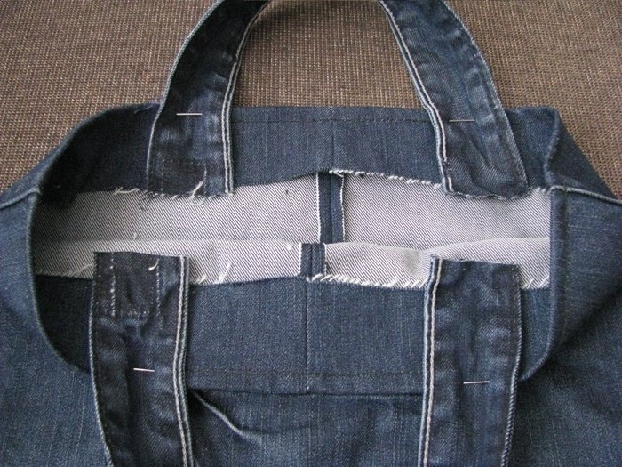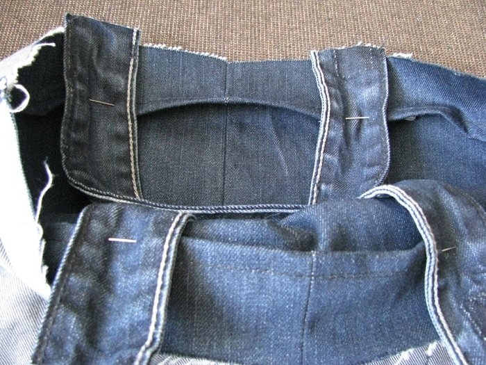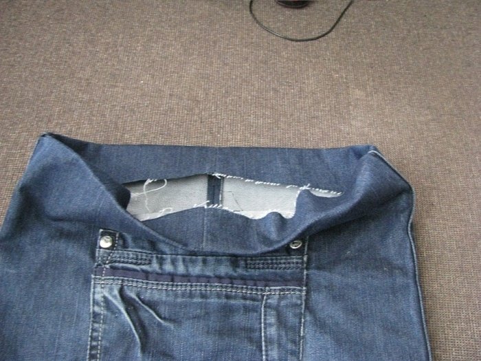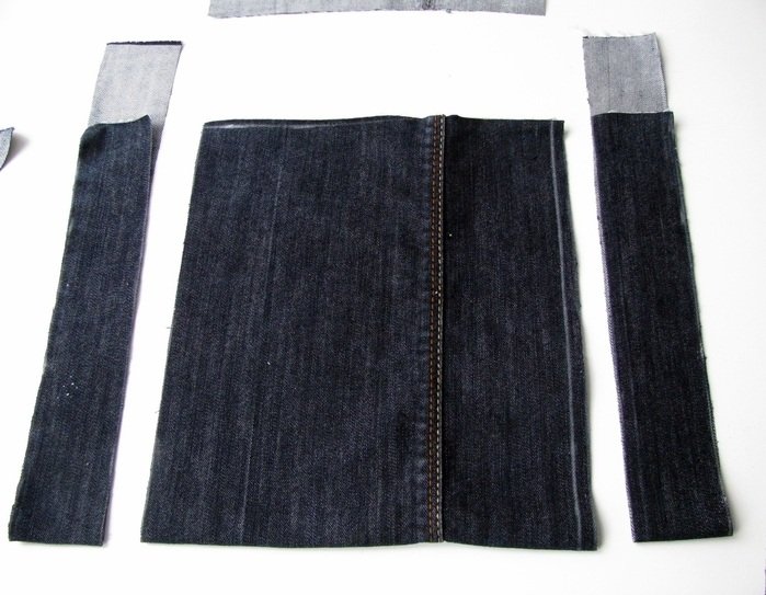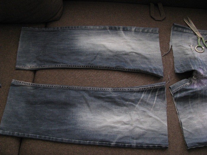 Вначале отрезается пояс с джинсов для создания ручек сумки.