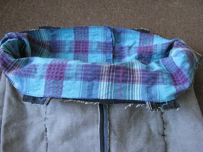 - По такому же принципу делается подкладка из куска ткани или непотребной рубашки. Боковой шов сшивать полностью не надо, ведь должно быть место для выворачивания.