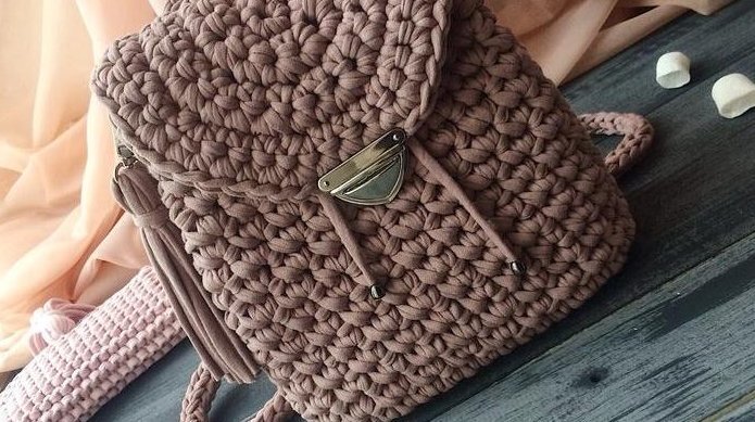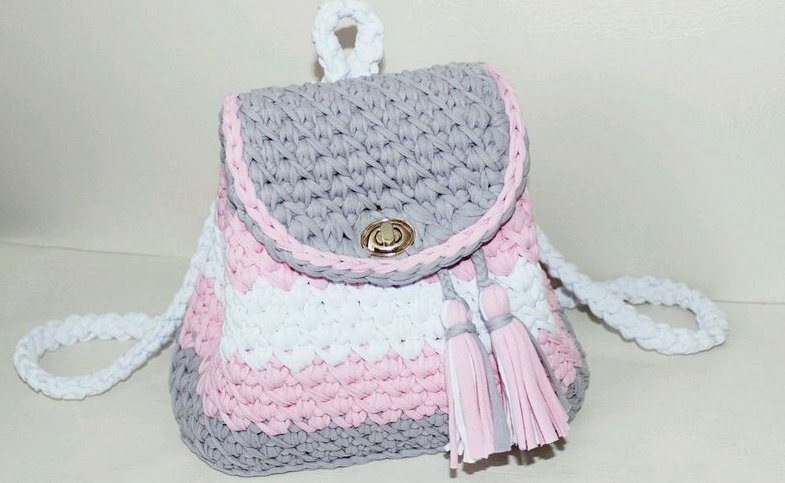 Его сложнее вязать, так как он состоит из нескольких деталей. Однако стильный и многофункциональный рюкзак того стоит.