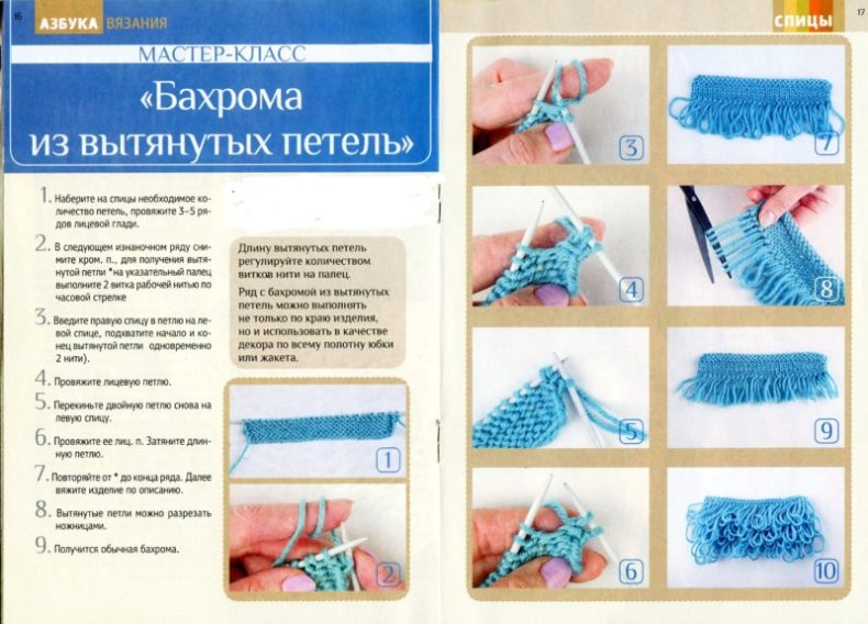 - По желанию мастерицы вяжите сбн или ссн примерно 7-8 рядов, затем начинайте вывязывать вытянутые петли желаемой длины.
