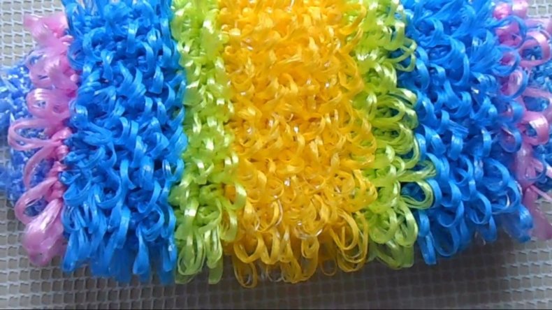 Мочалки можно вязать из однотонных нитей, более яркими получаются изделия, в которых использовались разные оттенки.