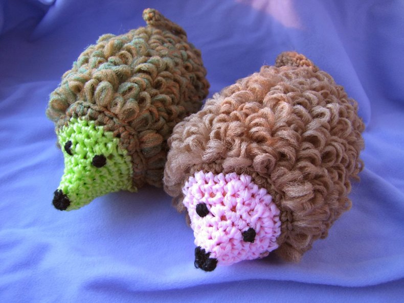 - Потом нужно связать иглы ёжика (вытянутые петли, как описано выше). Таких рядов потребуется 30.