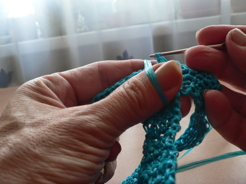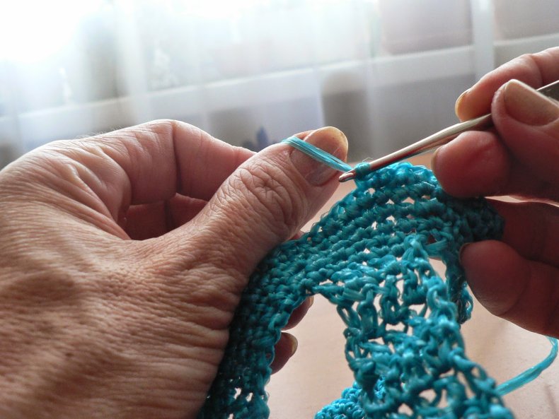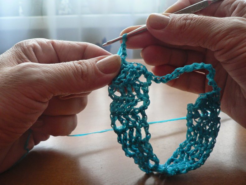 Вяжите изделие любым понравившимся вам способом. Чтобы аксессуар получился более прочным, и в то же время рыхлым, добавляйте вытянутые петли.