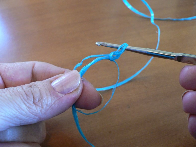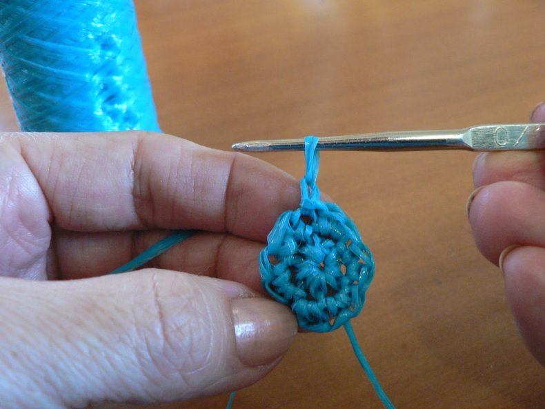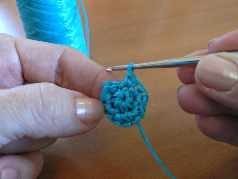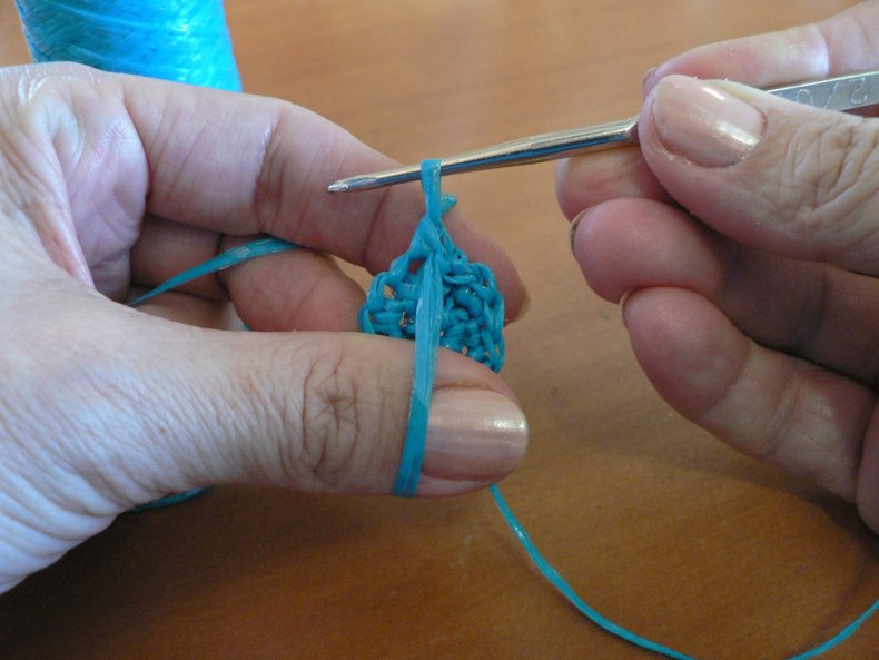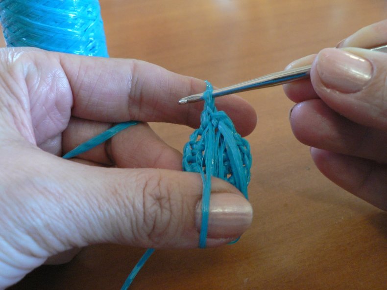 Для работы возьмите крючок №3, синтетический шпагат или вискозу.