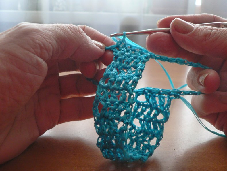 - Процесс вязания должен идти по спирали до тех пор, пока не получится ширина, нужная для индивидуальных размеров.