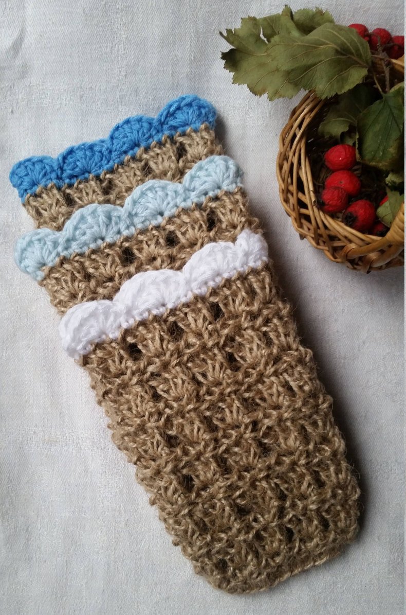 Связать мочалку (110 фото): учимся вязать из джута с вытянутыми петлями крючком и спицами круглые губки для мытья посуды