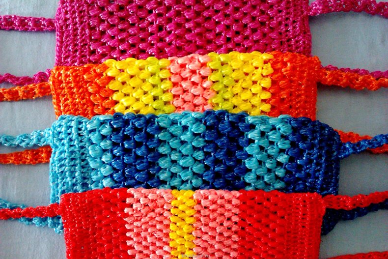 Можно брать уже использованные пакеты или новые. Расцветка зависит от вкуса и настроения рукодельницы. Лучше подойдут мягкие пакеты, у которых нет завязок и ручек.