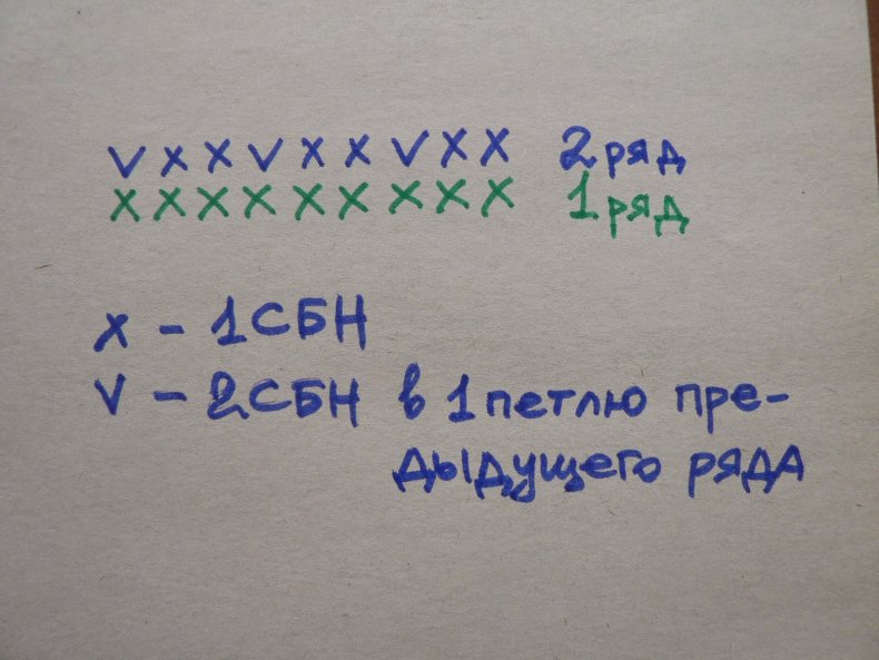 - Со 2 по 4 ряды уже выполняйте ссн. Это основное полотно без узоров.