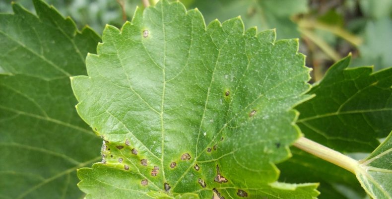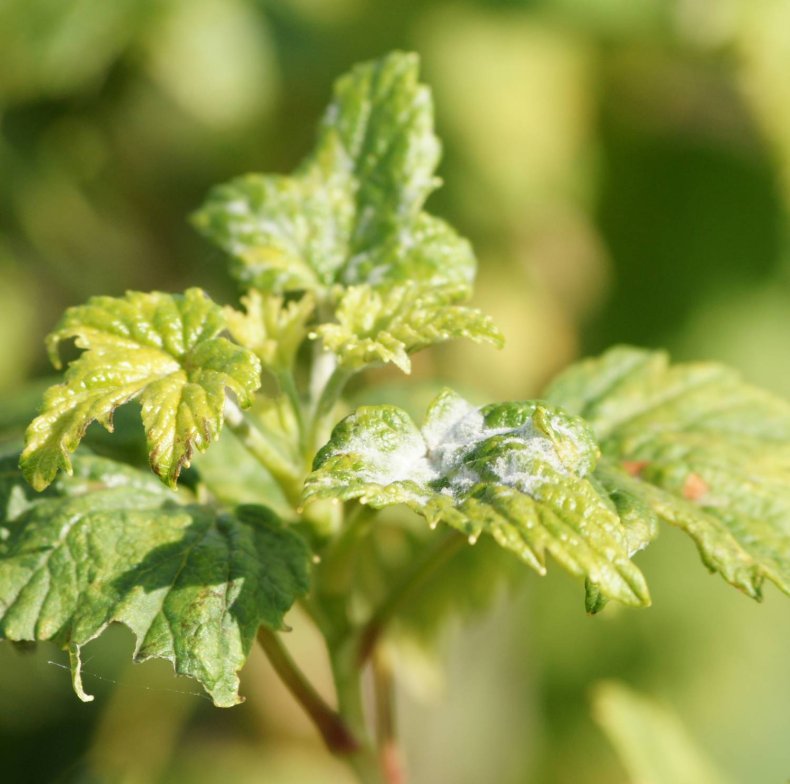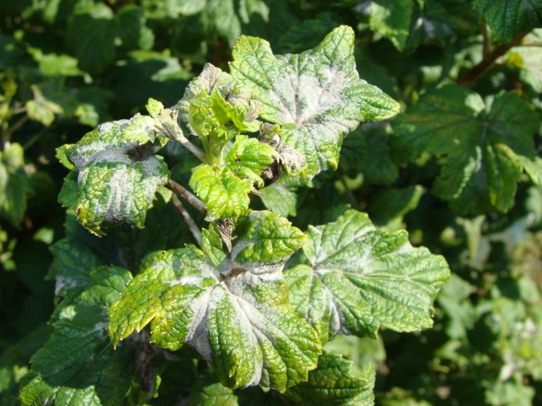 - Мучниста роса. От нее чаще всего страдают как старые, так и молодые кусты. Чаще всего встречается в средней полосе России и на юге. При наличии данного заболевания листочки бледнеют, после на них образуется белый налет. Больные ягоды опадают, а листочки ослабевают и засыхают.
