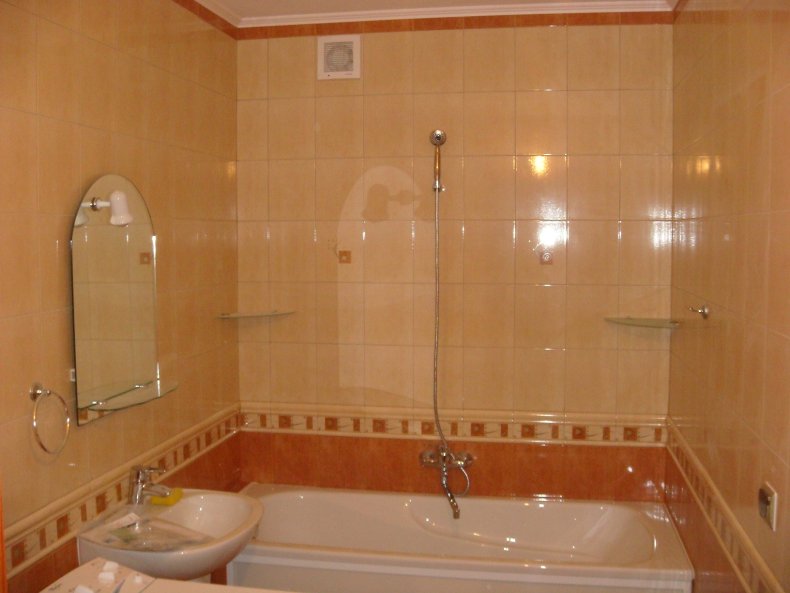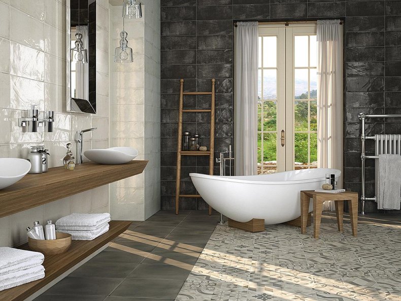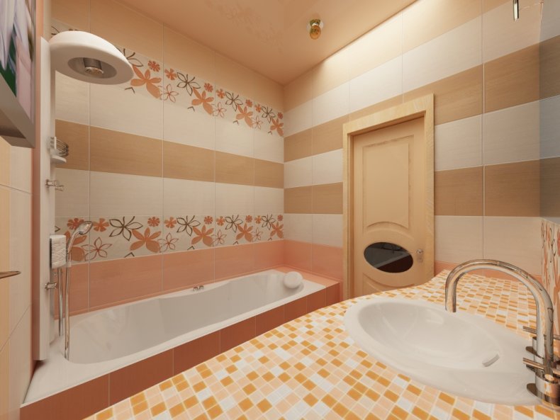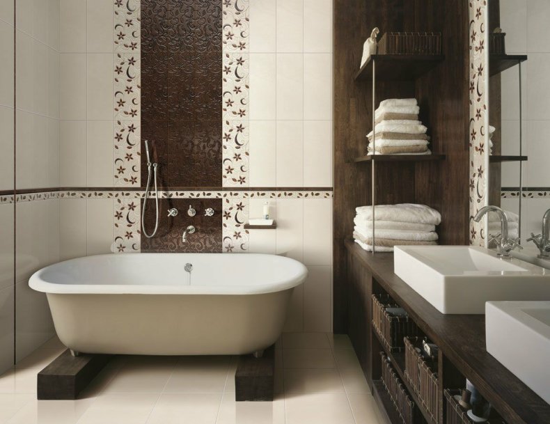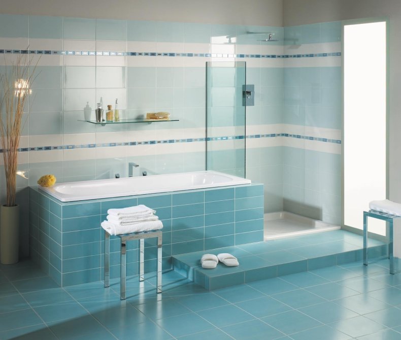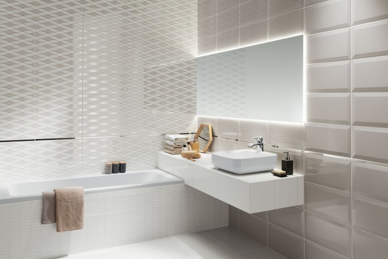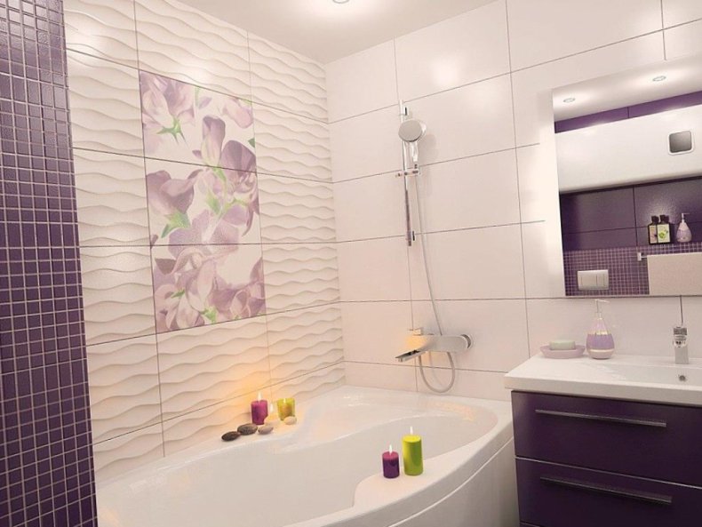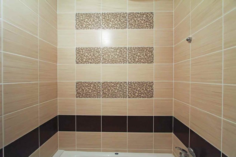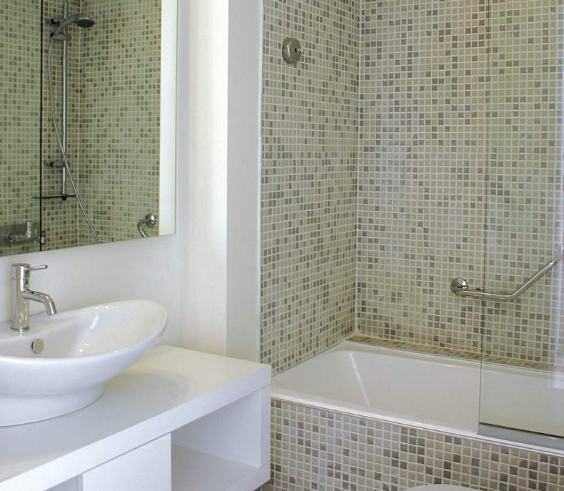 В ванне длительное время преобладает высокая влажность, поэтому, чтобы снизить риск проникновения влаги под плитку, следует использовать крупный размер кафеля.