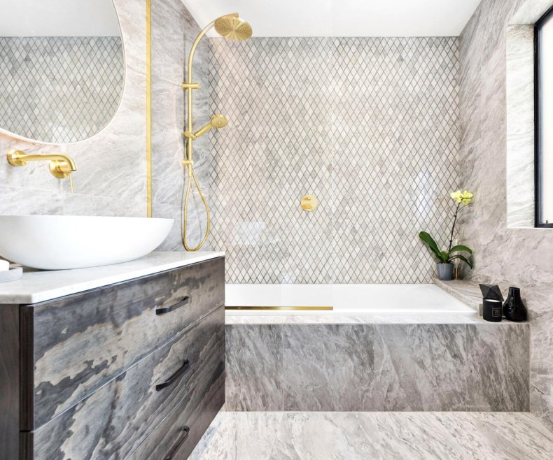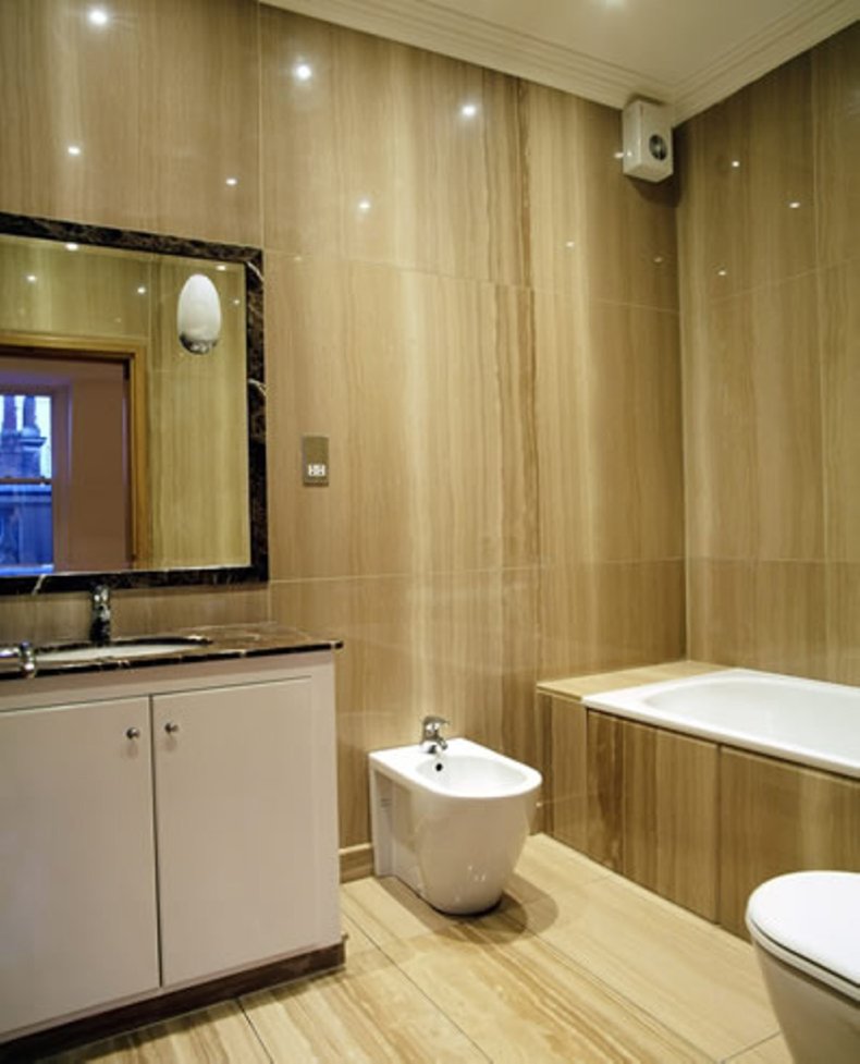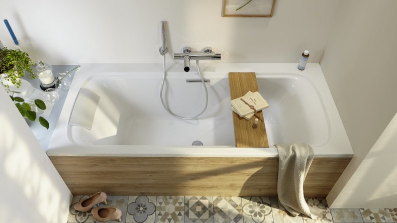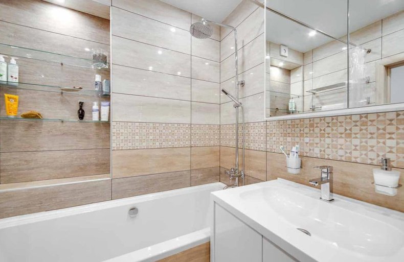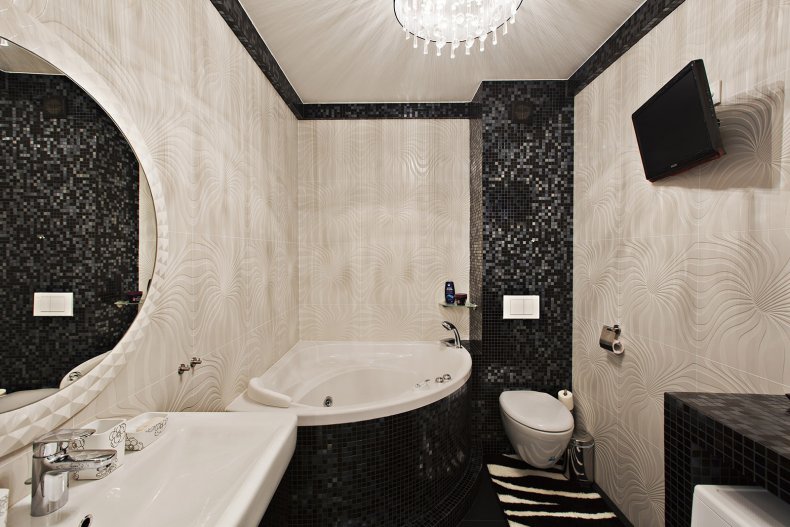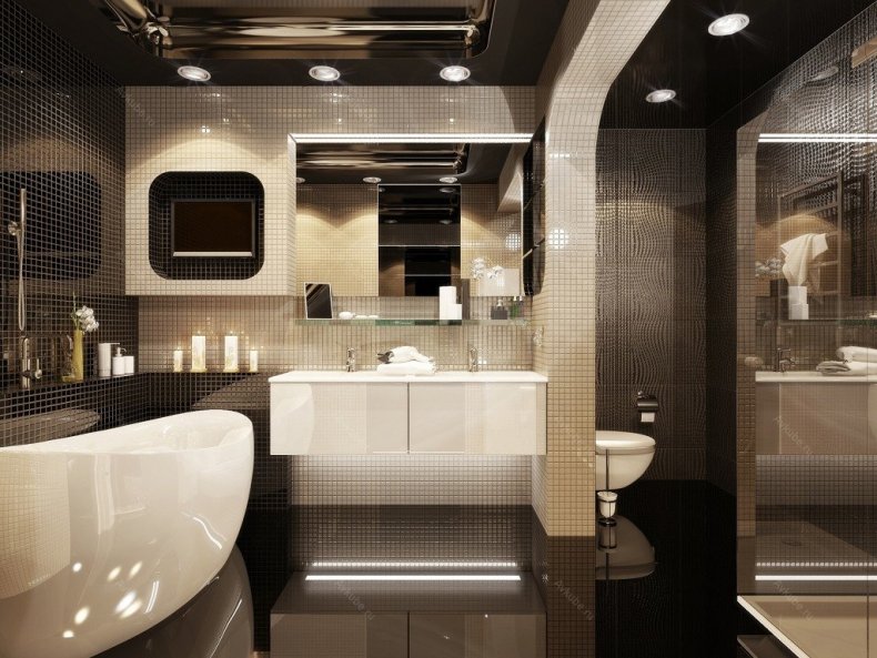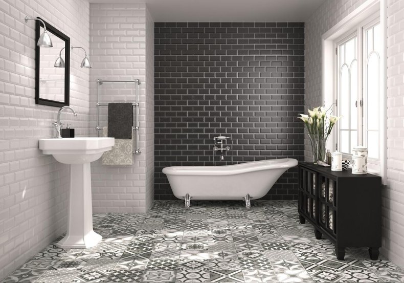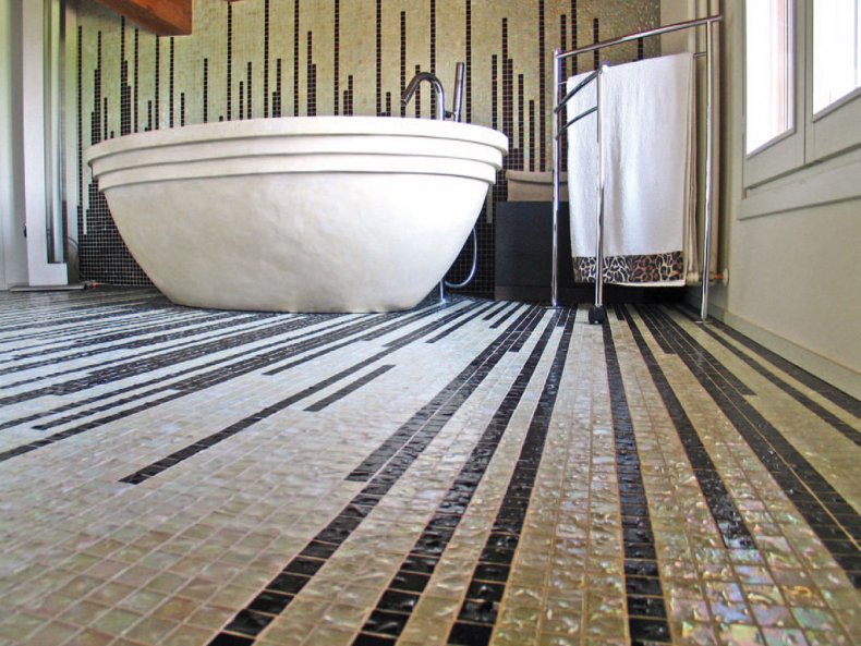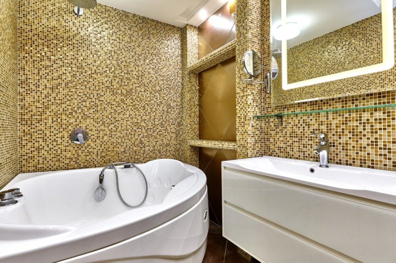В ванне длительное время преобладает высокая влажность, поэтому, чтобы снизить риск проникновения влаги под плитку, следует использовать крупный размер кафеля.