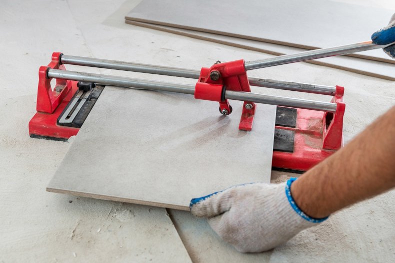 - Нарезать кафель легко, достаточно совмещать колесико на устройстве с чертой.