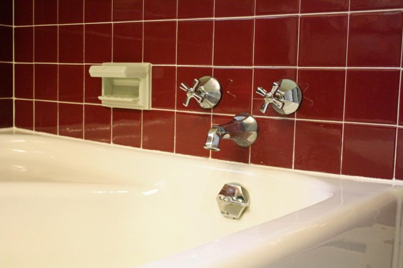 После удаления старого покрытия в ванной на стенах и полу останутся остатки соединительных материалов и частички плитки.