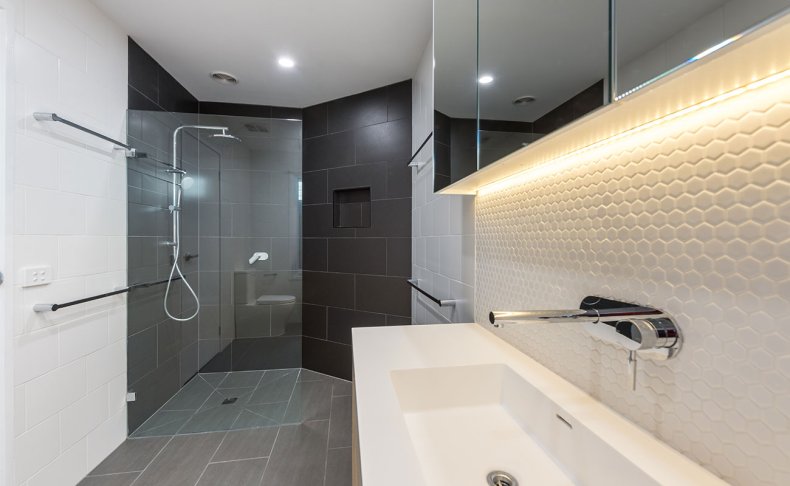 - Это позволит уменьшить количество швов, а значить снизить риск проникновения воды через них под плитку.