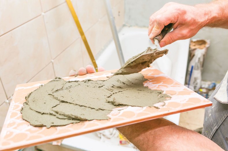 - Между плиткой и основание не должно образовываться отверстий, что допускается на стене.