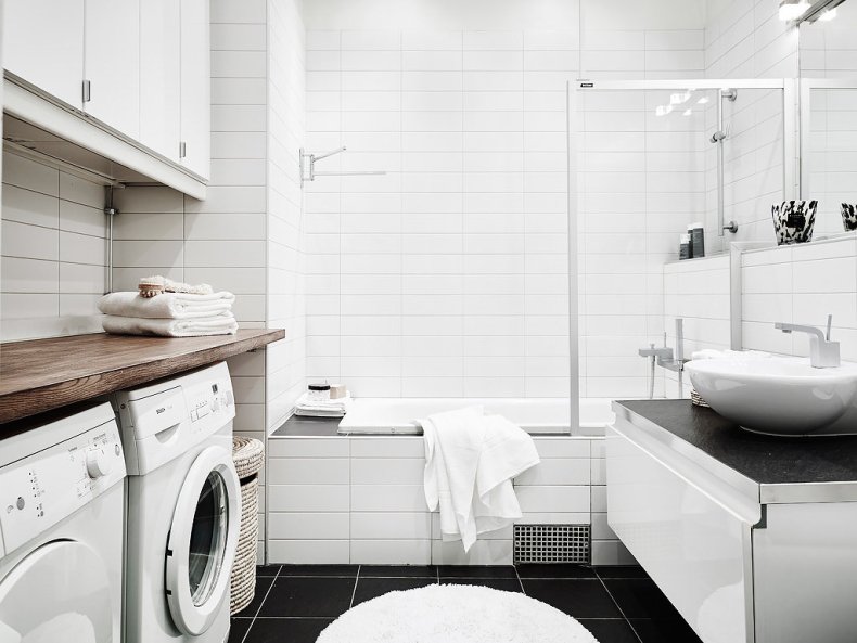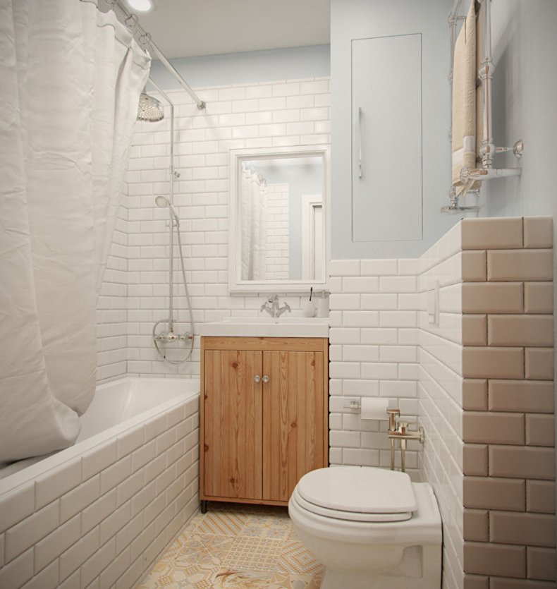 - Использование прямоугольной плитки поможет визуально увеличить пространство в помещении.