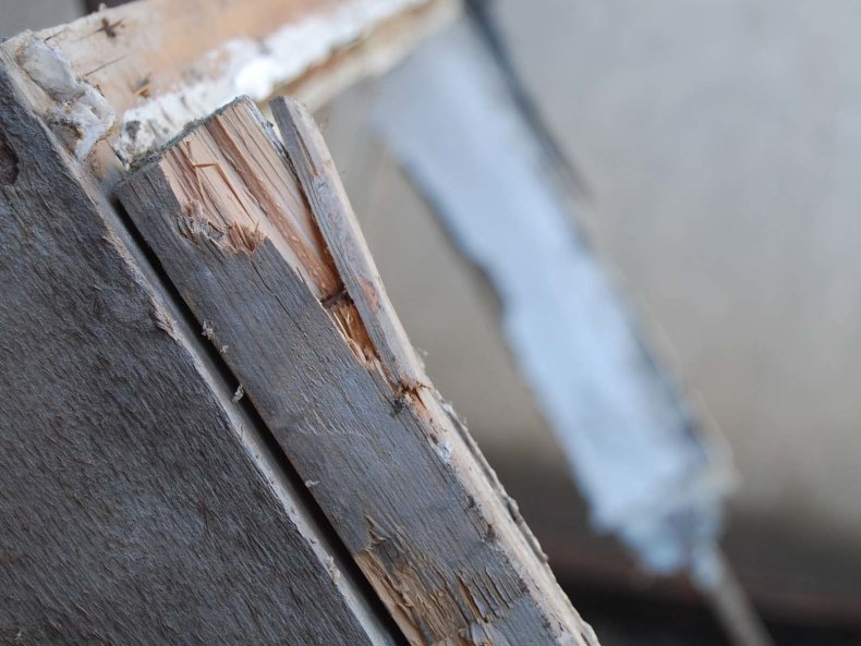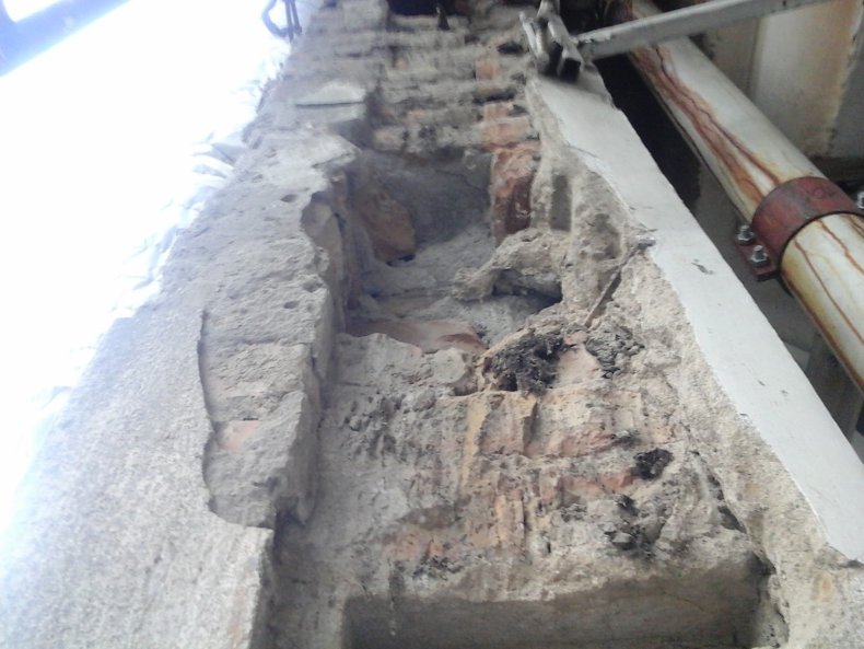 - Вынимаются куски утеплителя, цементного раствора и компоненты, которые отваливаются.